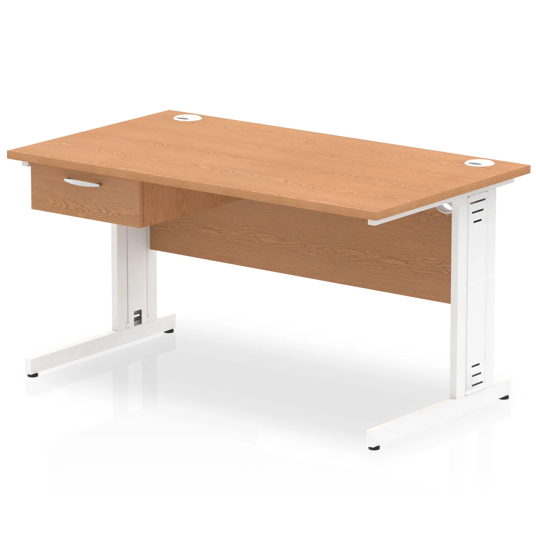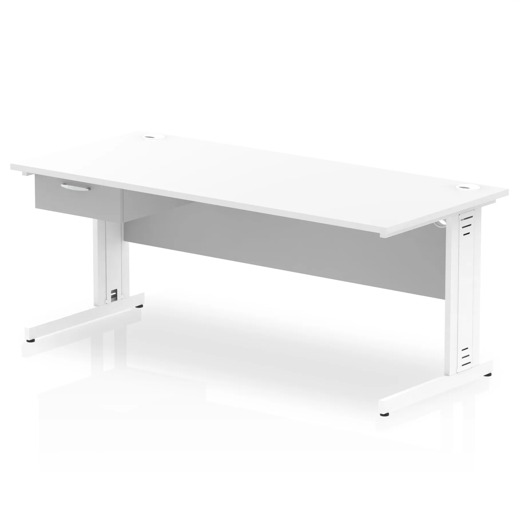 Impulse Cable Managed Straight Desk White Frame With Single One Drawer Fixed Pedestal