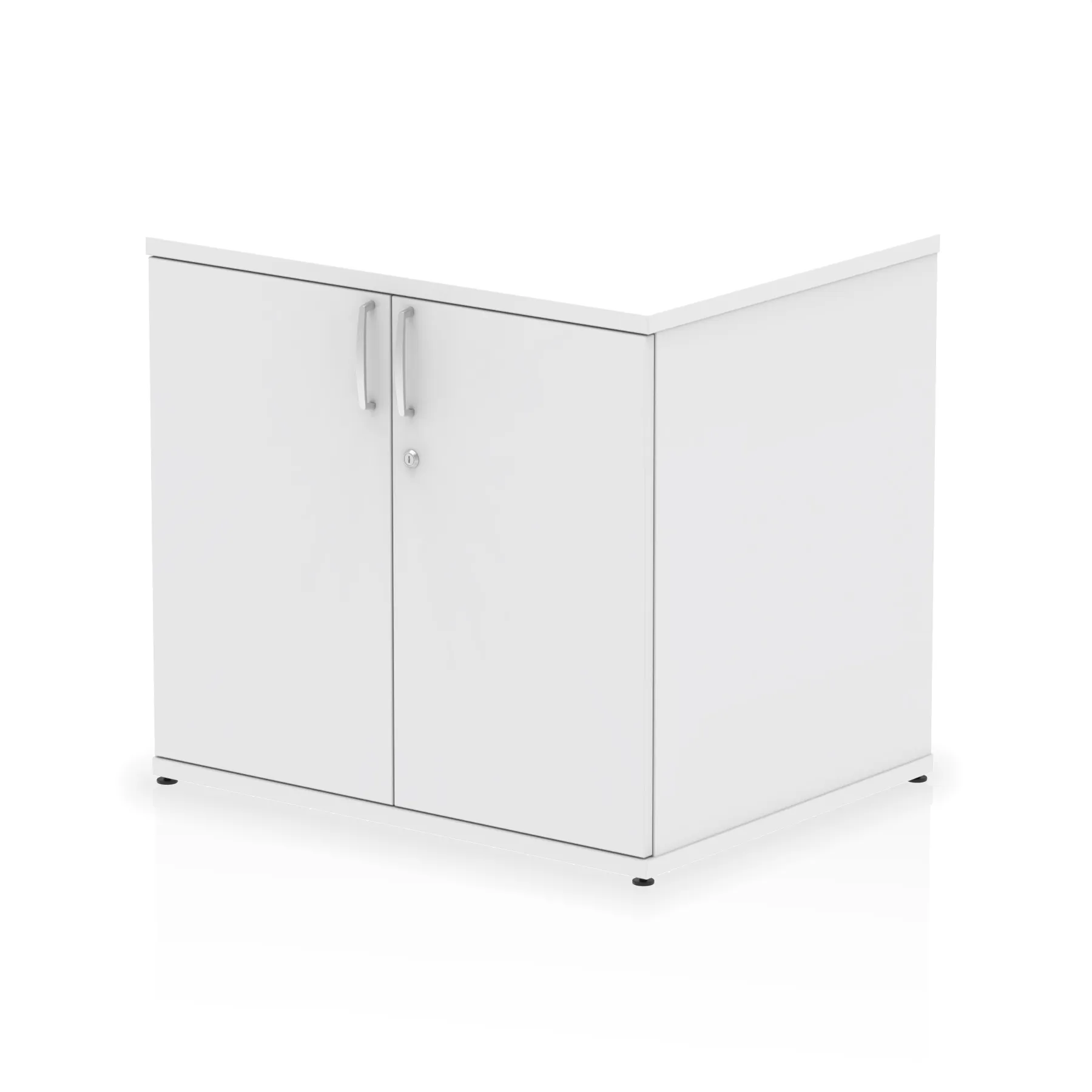Impulse 800 wide cupboard | 25mm thick wood finish | Fits on end of 600 deep desk | 2mm abs protective edges | Steel to steel fixings | 18mm side walls | Adjustable shelf | Adjustable feet | Heat resistant melamine finish | Solid back board | Matching doors | Weight Capacity: 20Kg per shelf